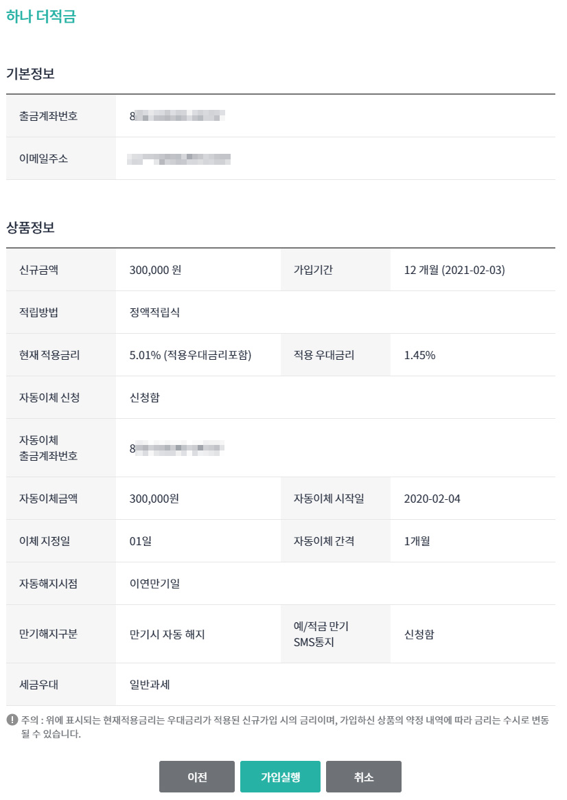 하나은행 5% 적금인 하나 더 적금은 가입 할 때만 잘 해놓으면